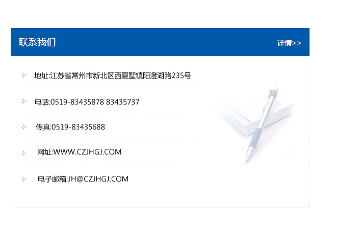 地址:常州市新北區友邦商務大廈1幢16、17層  電話:0519-85101652  傳真:0519-85112595  郵編:213022  網址:www_cz-jiayue_cn.0311ya.com  郵箱:xiajifengaa@163.com